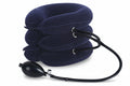 Each squeeze of the hand pump inflates three stacked chambers that press upward under the jaw and downward against the shoulders — applying gentle axial traction along the cervical spine, the same principle used in clinical cervical traction.